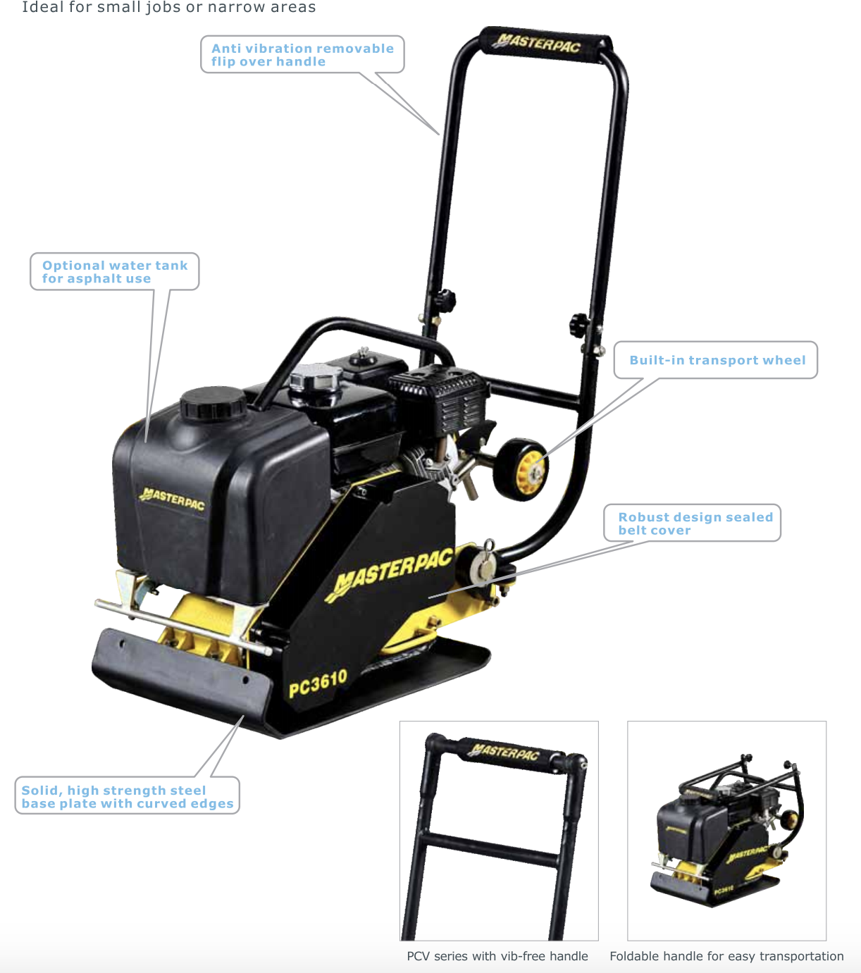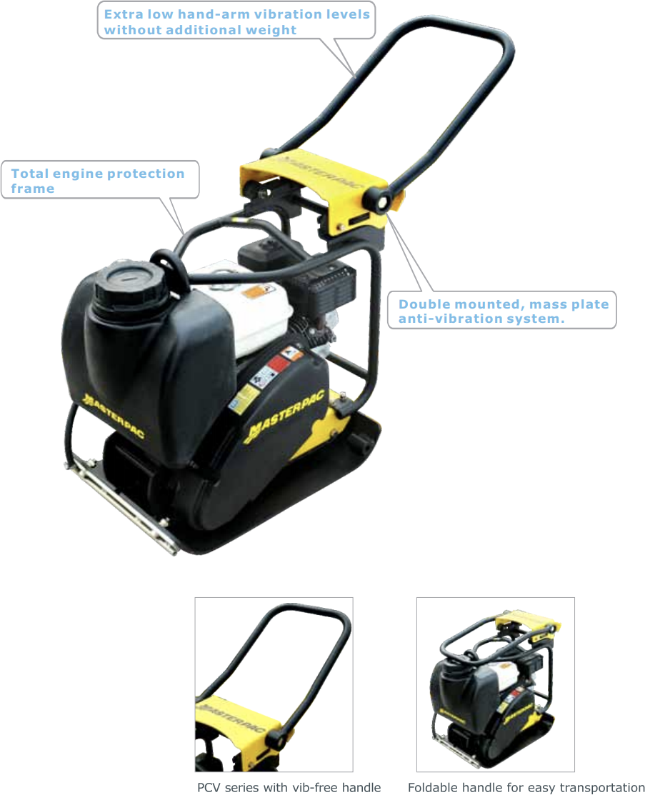 Never been compromising on performance and productivity, Masterpac's new plate compactor PCL4015 is designed with extra low HAVs, and thus makes the operation safer, easier and eventually longer. This plate is ideal to work on soil, asphalt and sub-base, as it maintains a high efficiency without exposing operators to excessive harmful HAVs.