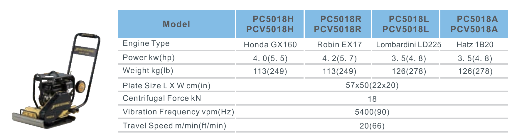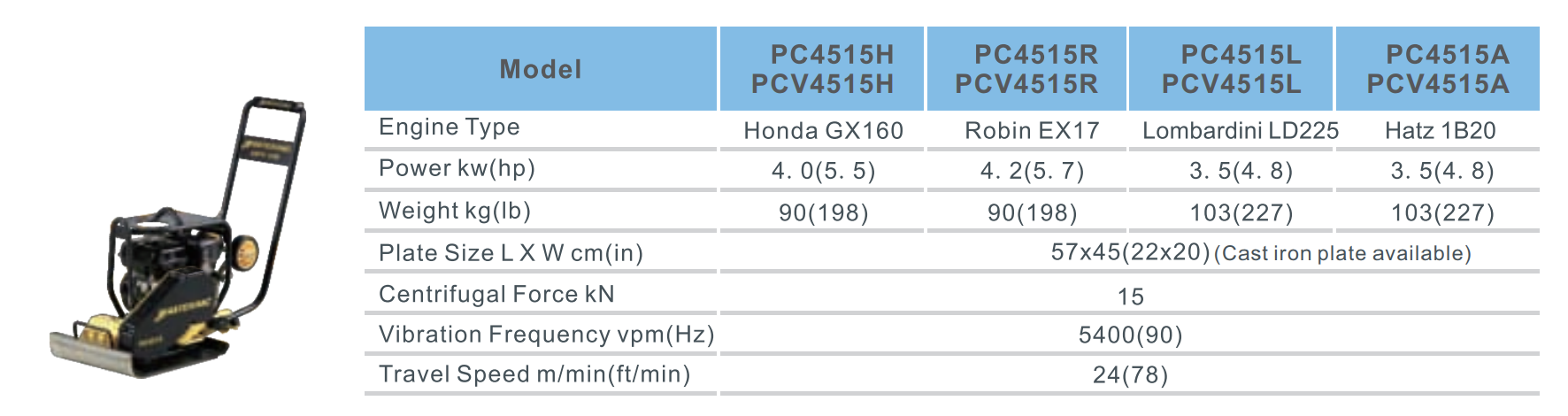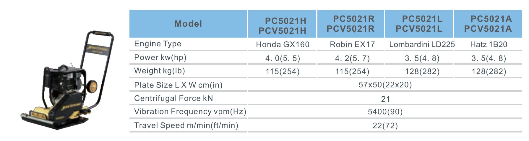 - Powered by gasoline as HONDA, ROBIN, and diesel as LOMBARDINI, HATS